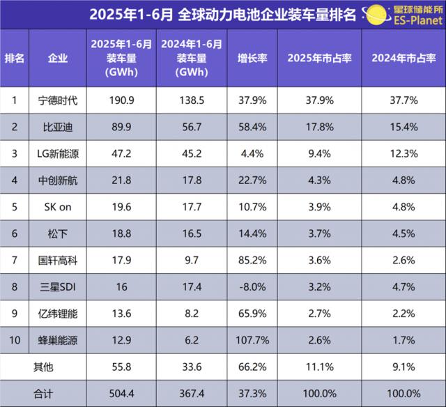 ※ 图表:上半年 全球动力电池企业装车量排名